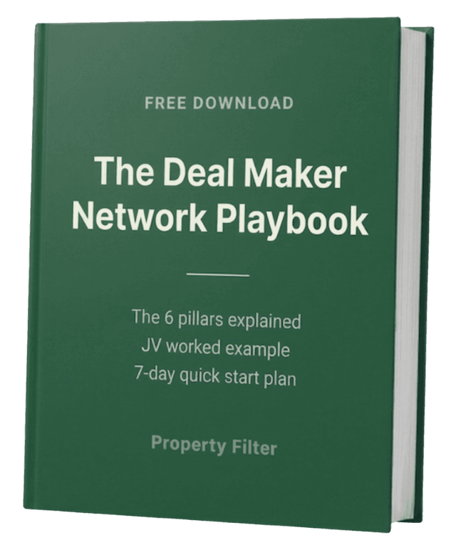 A free extract from the Deal Maker Blueprint. Each of the six stages building the network that turns hesitation into action: your power team, JV partnerships, accountability, and more. Plus a bonus section on attracting private finance.