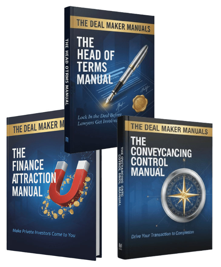 The deal isn't done until the keys are in your hand. This bundle keeps your transactions on track from accepted offer to completion day. Lock in terms that protect you, control your conveyancing so nothing slips, and attract the private finance you need to fund deal after deal after deal.